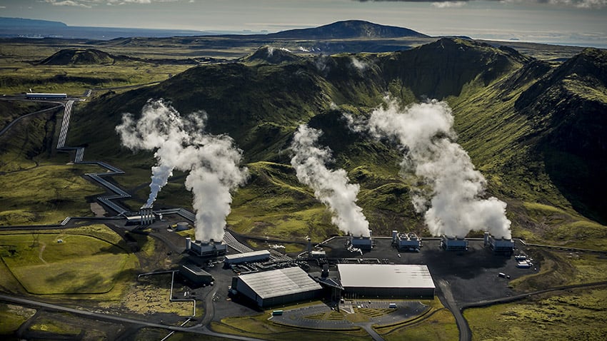 L’installation « Orca » (de « Orka » qui signifie « énergie » en islandais) est la nouvelle vitrine des ambitions de Climeworks, start-up issue de l’École polytechnique de Zurich. Située à côté de la centrale géothermique de Hellisheiði (303 MW de puissance) au sud-ouest de l’Islande, elle vise à capter directement dans l'air ambiant près de 4 000 tonnes de CO2 par an.