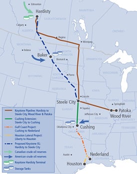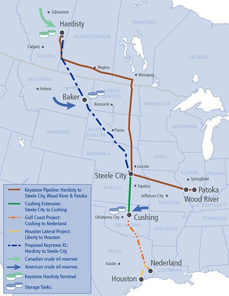 Oléoduc Keystone existant et portions en projet (©TransCanada)