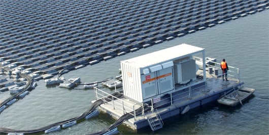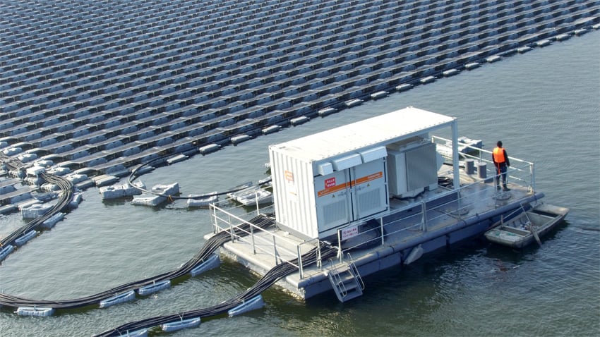 La centrale flottante de 40 MW mise en service cette année par Sungrow a fait l’objet d’un investissement d’environ 45 millions de dollars. (©Sungrow)