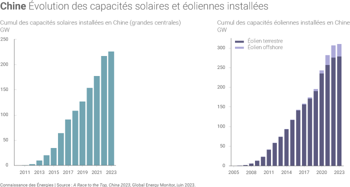 Évolution des capacités éoliennes et solaires installées en Chine