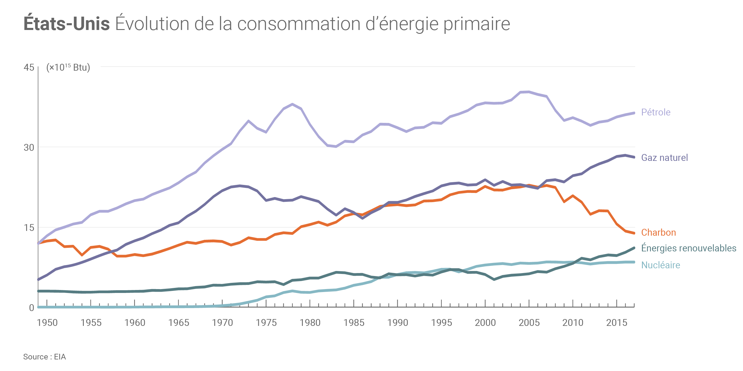 L’âge desdites centrales, les variations régionales de la consommation électrique(3) et la concurrence croissante des énergies renouvelables ont également pesé sur le déclin du charbon, explique l’EIA. Malgré l’annonce de Donald Trump de quitter l’Accord de Paris et le soutien affiché du Président à l’industrie charbonnière(4), l’agence américaine note que des réglementations environnementales, notamment les Mercury and Air Toxics Standards (MATS)(5) adoptés en 2015 (soit avant l’investiture de Donald Trump), ont également conduit à l’arrêt de nombreuses centrales à charbon.