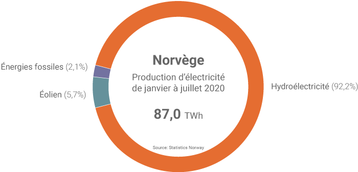 Dans le cadre de la transition énergétique européenne, les filières renouvelables à production intermittente (éolien et solaire photovoltaïque en tête) progressent dans les mix électriques des États membres, ce qui nécessite de développer en parallèle d’importantes capacités de stockage pour préserver l’équilibre des réseaux électriques(2). Selon cette publication, la Norvège pourrait « apporter une contribution importante » (de l’ordre de 10% en 2050) aux besoins de stockage de l’UE grâce à son parc hydroélectrique (qui compte pour plus de 92% de la production d’électricité dans ce pays(3)).