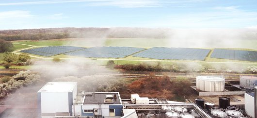 Photomontage de la centrale solaire thermique qui doit être implantée près de l’usine de Lactalis à Fromeréville-les-Vallons. (©Newheat)