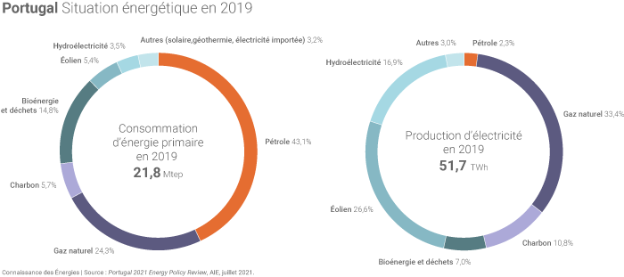 Le Portugal a déjà réduit sa dépendance énergétique en développant les filières renouvelables sur son territoire, en particulier pour produire de l'électricité, souligne l'AIE. Les énergies renouvelables comptent ainsi - malgré « une croissance limitée ces dernières années » - pour plus de la moitié de la production électrique du Portugal (54% en 2019, principalement grâce à l'éolien et l'hydroélectricité). Le pays ambitionne entre autres de développer massivement l'énergie solaire (une nouvelle centrale hydroélectrique de 1,2 GW est par ailleurs en projet).