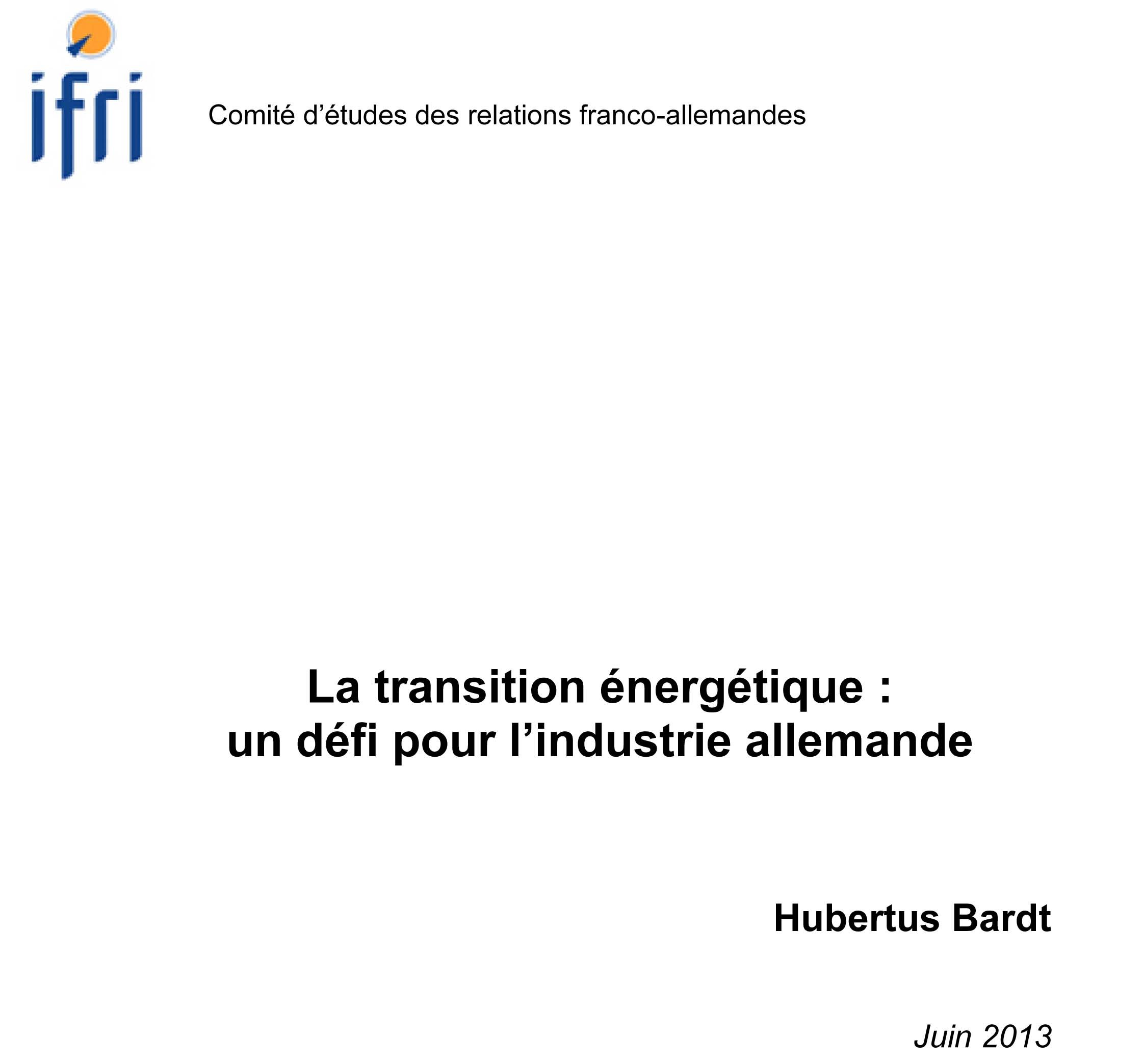 Dans une étude publiée par le Comité d'études des relations franco-allemandes (CERFA) de l'Ifri, Hubertus Bardt analyse les effets de la transition énergétique allemande sur les entreprises nationales. « Le principal danger serait que l'État recoure de manière excessive à des mesures contraignantes pour restructurer la production d'énergie, car cela menacerait la compétitivité et les gains de productivité, en particulier dans le secteur de l'électricité », met-il en garde.