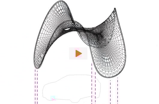 Basé à Los Angeles, le cabinet Synthesis Design + Architecture a été primé pour son projet de voile photovoltaïque générant de l’électricité. Outre sa dimension esthétique et aérienne, elle a une fonction énergétique : elle intègre des capteurs photovoltaïques qui permettent de recharger la Volvo hybride. Cette caractéristique n’était pas inscrite dans le cahier des charges initial du concours. Elle a en tout cas permis au projet de se distinguer selon ses concepteurs.