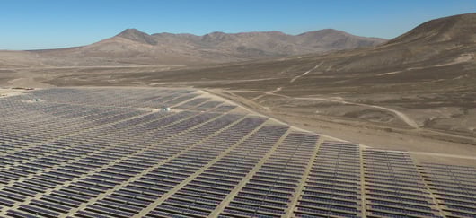 Située au milieu du désert d’Atacama au Chili, la centrale photovoltaïque de Boléro a été mise en service par EDF fin 2016. (©EDF-DR/Visual Productora)