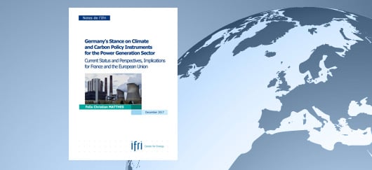 Dans cette étude en anglais publiée le 14 décembre par le Centre Énergie de l’Ifri, Felix Christian Matthes(1) rappelle les politiques climatiques successives en Allemagne (depuis 1990) et le contexte énergétique de ce pays, en particulier dans le secteur électrique (sortie programmée du nucléaire, développement rapide des énergies renouvelables, importance des émissions de CO2 en raison du poids du charbon). Il étudie les conditions d’instauration d’un prix plancher du carbone dans le secteur électrique et émet des recommandations quant à sa possible mise en œuvre.