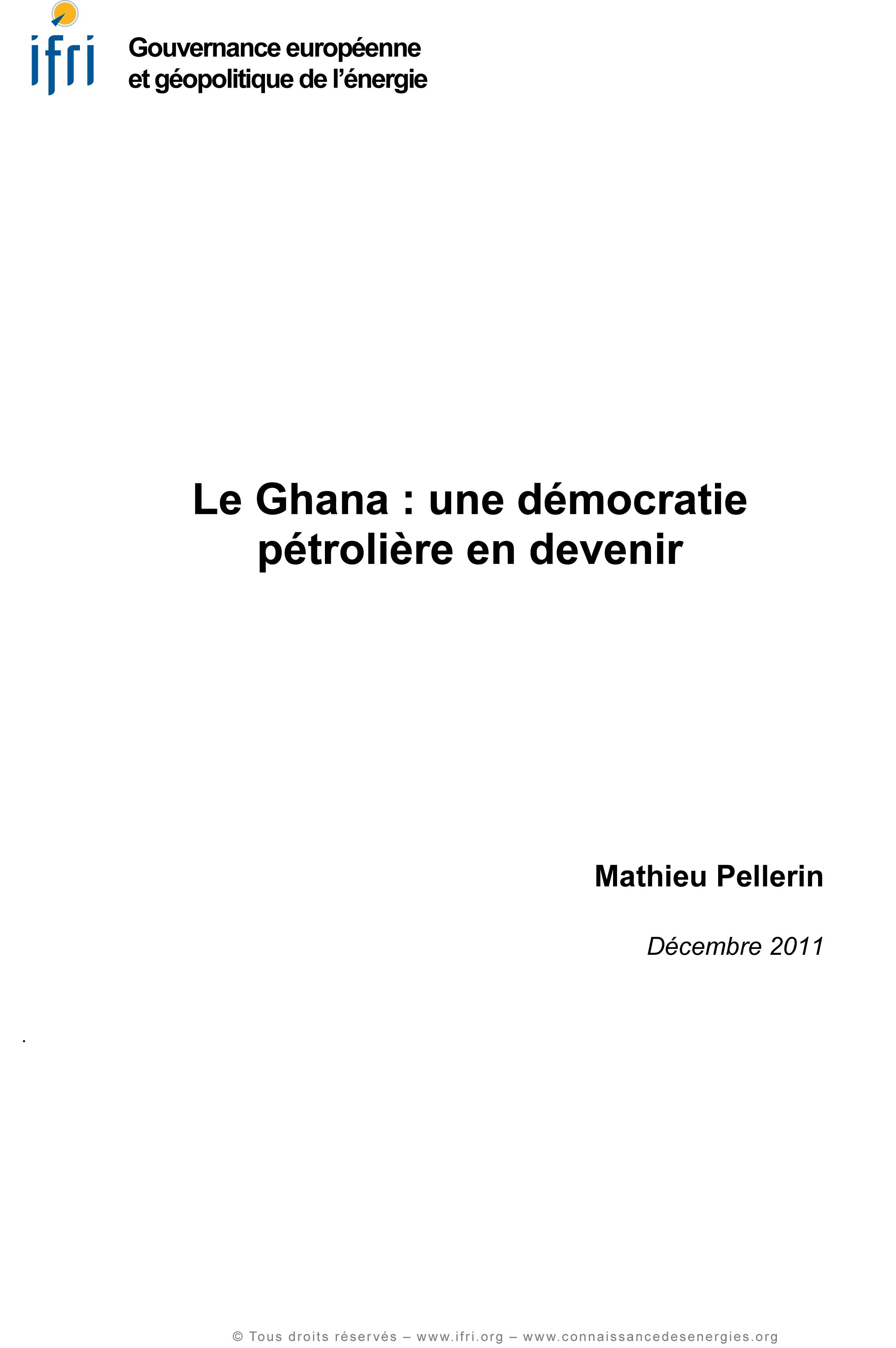 Dans une étude publiée par l'Ifri, Mathieu Pellerin, chercheur associé au programme Afrique subsaharienne et consultant en risque pays, décrypte les enjeux auxquels la jeune démocratie ghanéenne est et sera confrontée en exploitant ses ressources pétrolières.