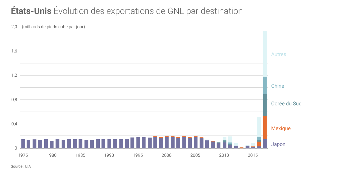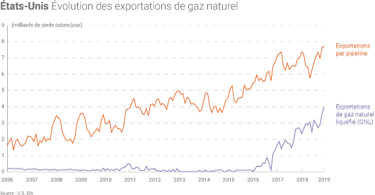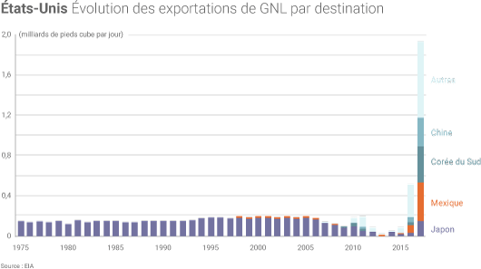 En 2017, les États-Unis exportaient plus de gaz naturel qu’ils n'en importaient pour la première fois depuis 1957.