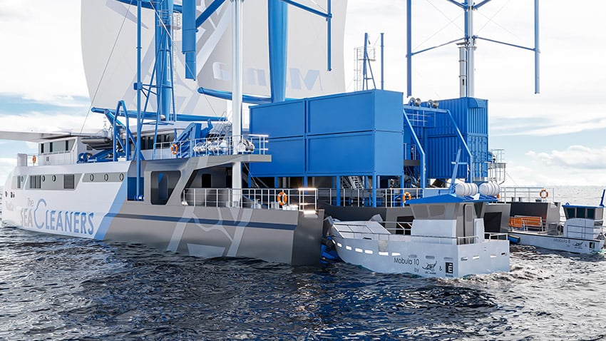 « Chaque minute, 17 tonnes de déchets plastiques sont déversées dans les océans... soit 9 à 12 millions de tonnes chaque année », rappelle The SeaCleaners. Cette association, créée par le navigateur franco-suisse Yvan Bourgnon(1), ambitionne de construire un « bateau nettoyeur des mers, capable de collecter de manière industrielle des déchets plastiques flottants […] aussi bien les macrodéchets que les débris plus petits à partir de 10 millimètres et jusqu'à un mètre de profondeur ».