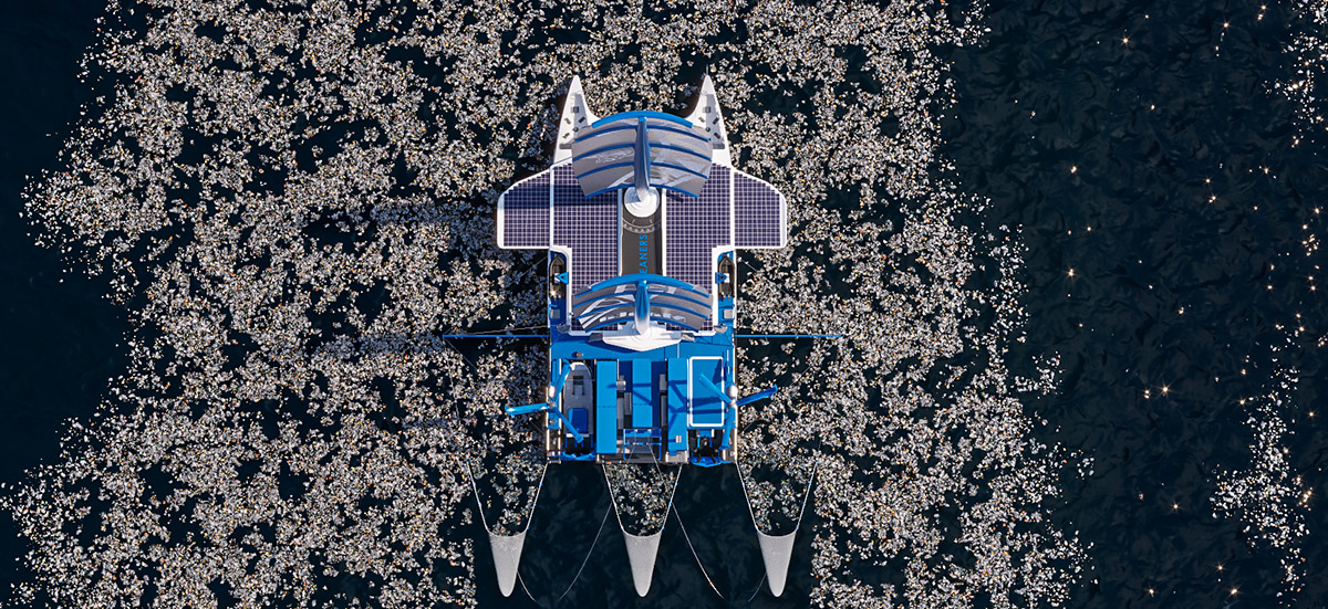 Le Manta sera le « premier bateau-usine capable de collecter et valoriser en mer de grandes quantités » de déchets plastiques flottants. Présentation de ce catamaran qui doit être mis à l’eau courant 2024.