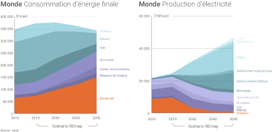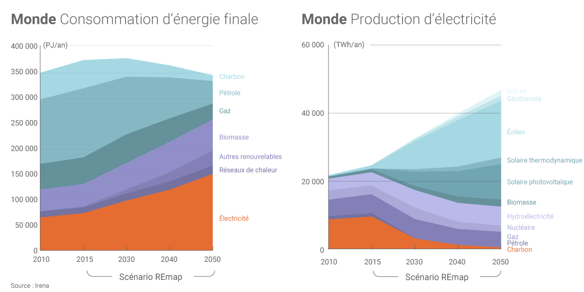 1. Global energy transformation : a roadmap to 2050, Irena, avril 2018.