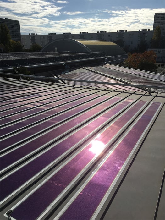 La durée de vie du démonstrateur « OPV » installé sur le toit du collège Pierre Mendès-France est estimée à 20 ans. (©Engie)