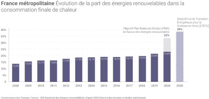 La part de la chaleur renouvelable en France métropolitaine