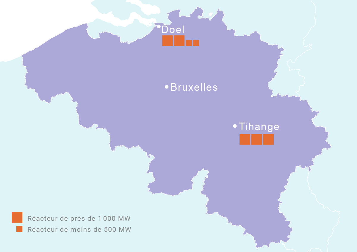 Le parc nucléaire belge, exploité par la filiale d’Engie Electrabel, se compose de 7 réacteurs(1) répartis entre 2 centrales : Doel (4 réacteurs de 3 GW de puissance cumulée) à 15 km d’Anvers en Flandre et Tihange (3 réacteurs de 3,2 GW de puissance cumulée) à 30 km de Liège en Wallonie. Ce parc joue un rôle central dans l’équilibre du réseau électrique belge puisqu’il compte pour près de la moitié de la production nationale d’électricité(2).