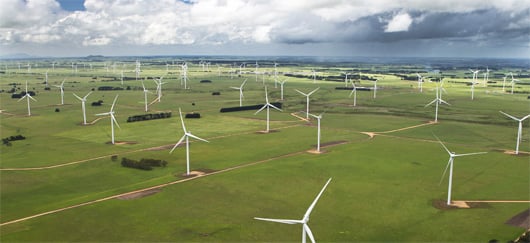 Installé au sud-est de l’Australie, le parc éolien de Macarthur est composé de 140 éoliennes de 3 MW de puissance unitaire. (©Courtesy of Vestas Wind Systems A/S)