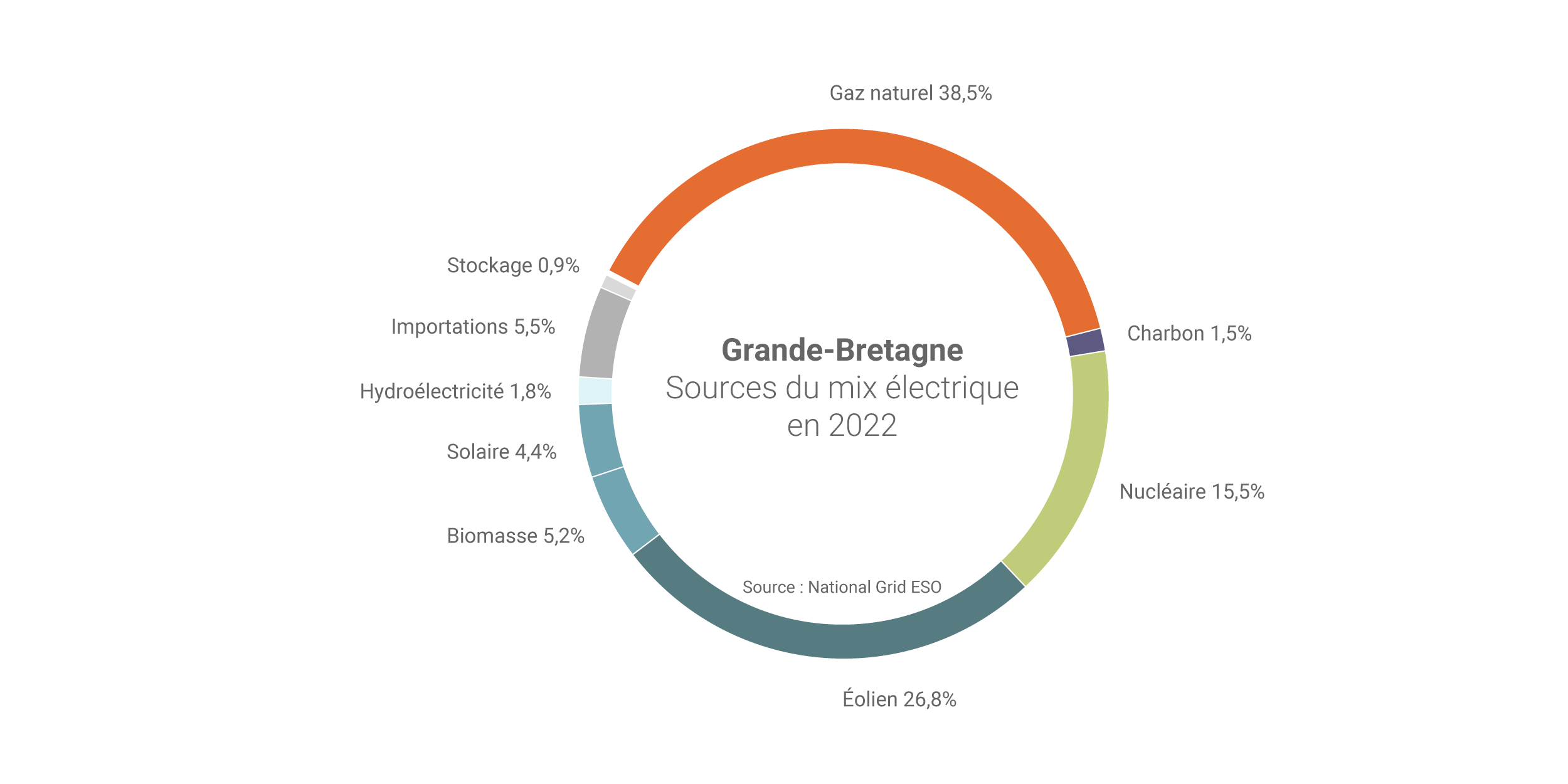 C'est toutefois bien le gaz naturel qui a toutefois encore fourni le plus d'électricité à la Grande-Bretagne en 2022 (38,5%) devant l'éolien (26,8%) et le nucléaire (15,5%).