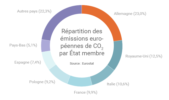 En 2014, les émissions de dioxyde de carbone provenant de la combustion d’énergies fossiles avaient baissé de 5% dans l’Union européenne par rapport à l’année précédente. En 2015, ces émissions seraient en revanche remontées de 0,7% selon l’organe statistique de l’Union européenne.