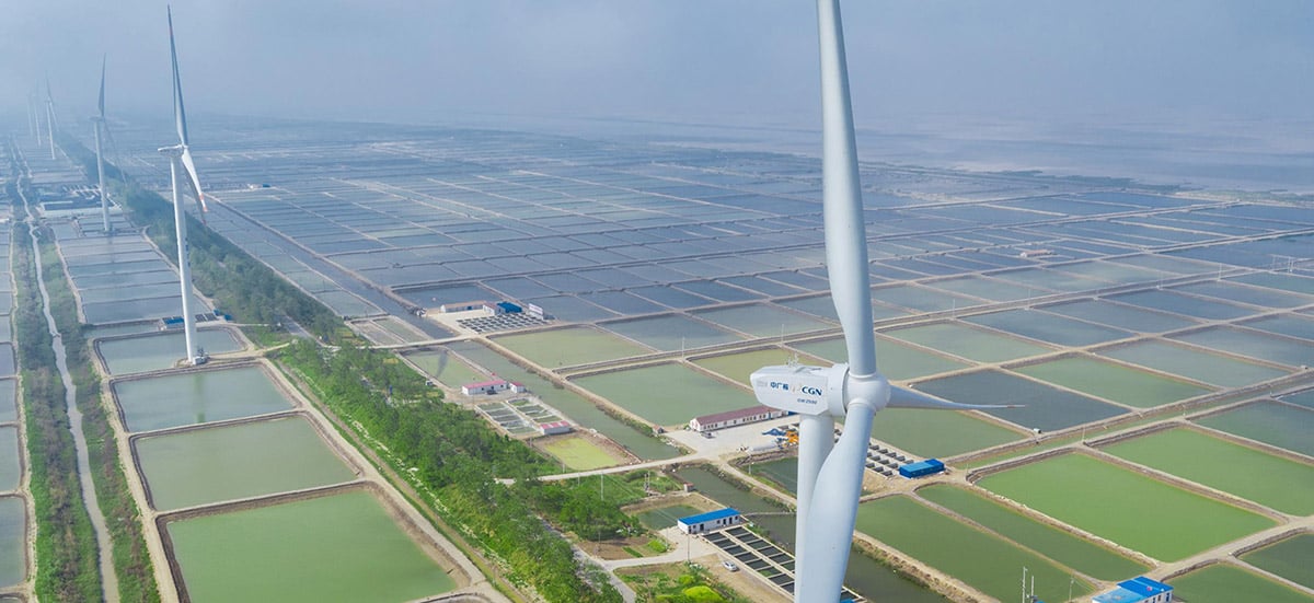 En Chine, la production éolienne d'électricité a augmenté de 65 TWh entre le 1er semestre 2021 et le 1er semestre 2022 selon Ember. Ici, un parc dans la province côtière du Jiangsu, à l'est du pays. (©Goldwind)