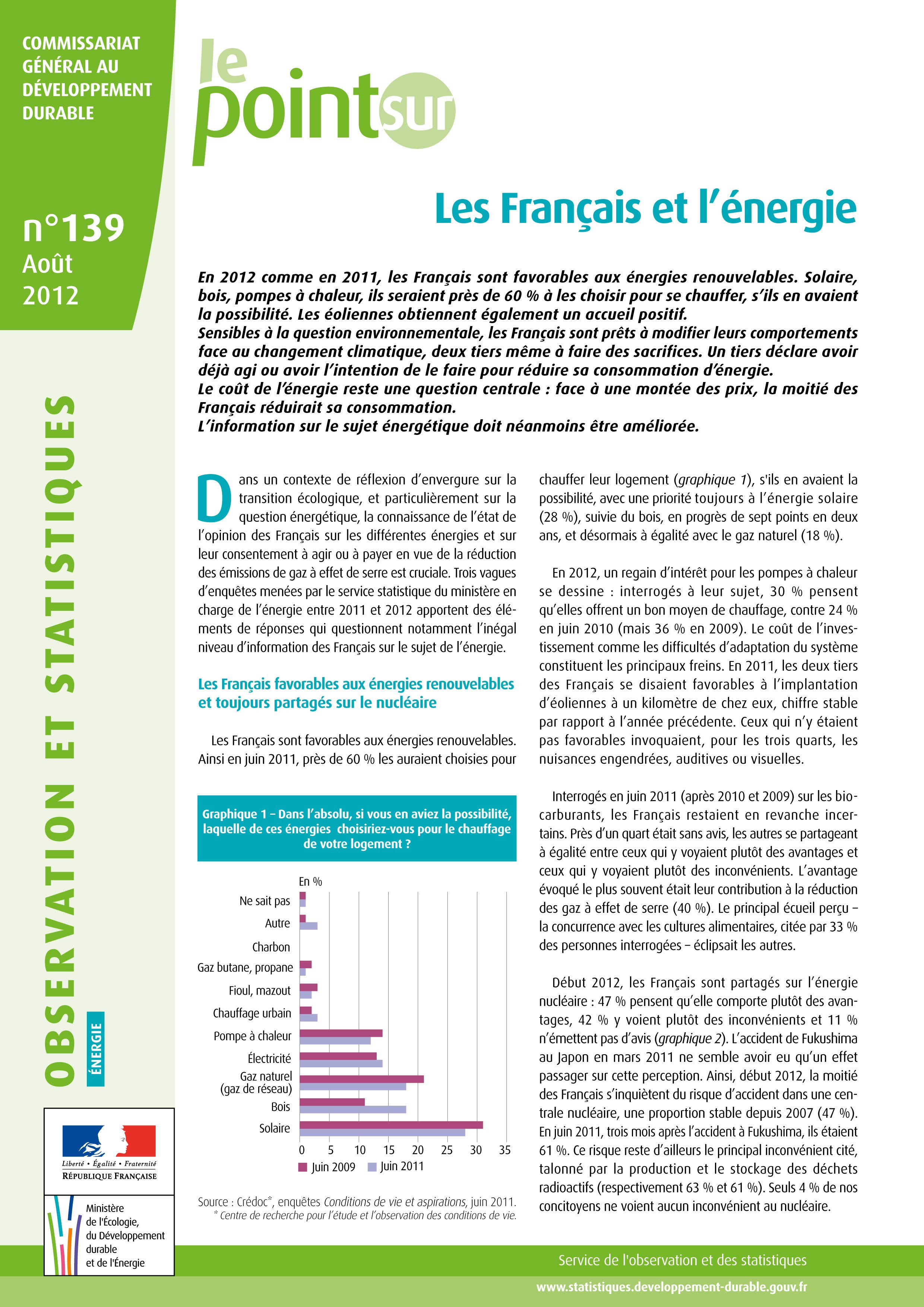 Début 2012, un Français sur deux ne connaissait pas l’existence des tarifs sociaux du gaz et de l’électricité. Concernant le nucléaire, près de 47% des personnes pensaient que cette énergie comportait plutôt des avantages tandis que 42% pensaient qu’elle comportait plutôt des inconvénients.