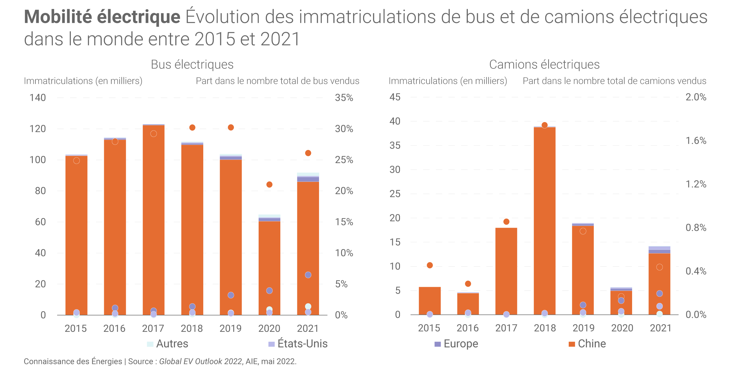 Précisons que la Chine occupe une place plus prépondérante encore sur le marché des bus et camions électriques.