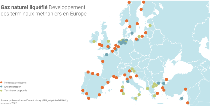 Précisons que la France a été le principal importateur européen de GNL (près de 36 Gm3 en 2022).