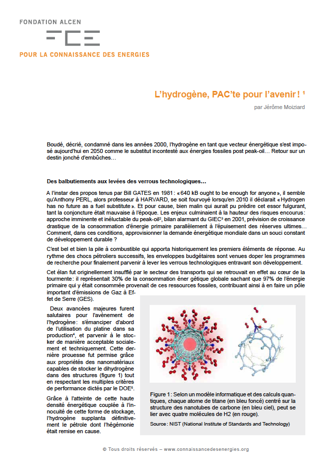 Boudé, décrié, condamné dans les années 2000, l'hydrogène en tant que vecteur énergétique s'est imposé aujourd'hui en 2050 comme le substitut incontesté aux énergies fossiles post peak-oil... Voilà le postulat de cet article de prospective, qui a remporté le concours 2011 "Génération Energies".