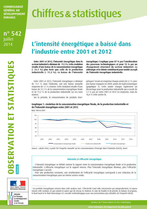 L’intensité énergétique dans l’industrie française