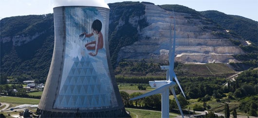 Réacteur nucléaire et éoliennes sur le site de Cruas-Meysse en Ardèche (©EDF-Colin Matthieu)