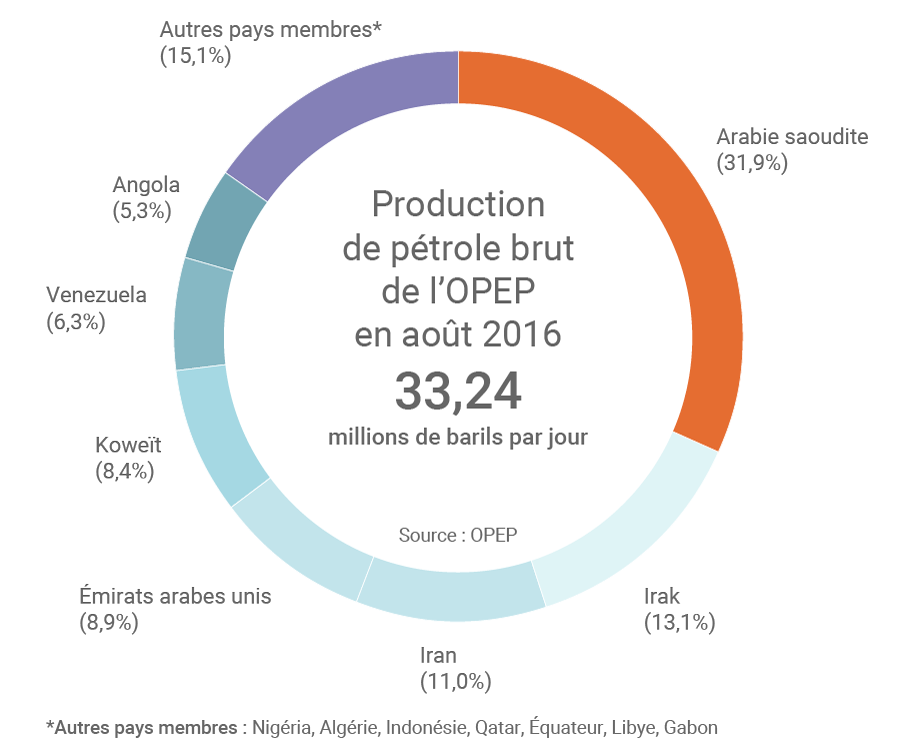 A eux trois, l'Arabie saoudite, l'Irak et l'Iran comptent pour plus de la moitié de la production de pétrole brut de l'OPEP. (©Connaissance des Énergies)