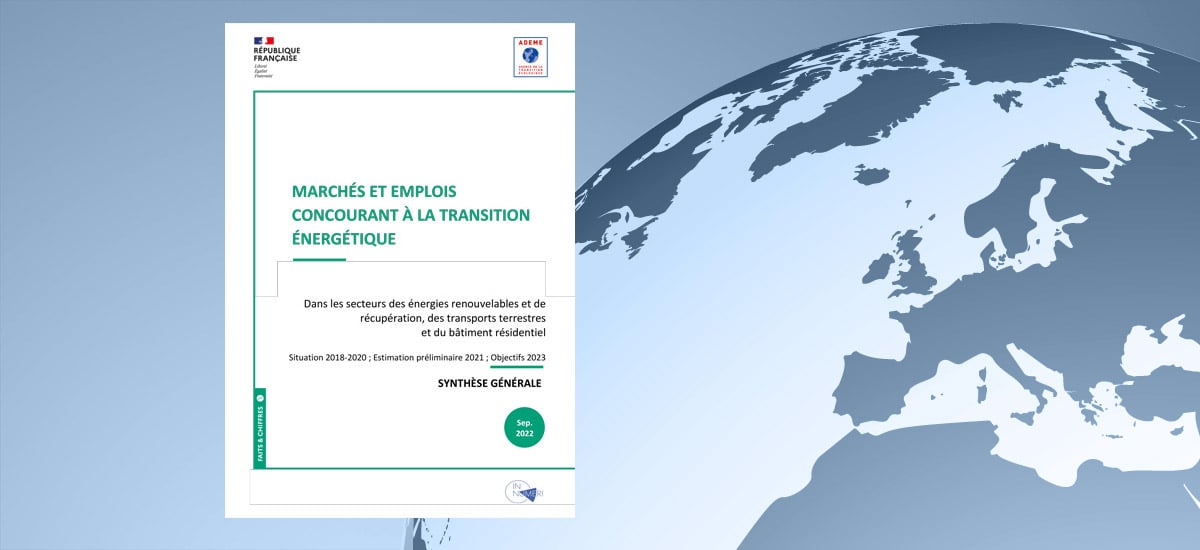 L'Ademe présente chaque année depuis 2018 un état des lieux en France des marchés et des emplois « associés à plus d’une trentaine de filières réparties en trois principaux secteurs concourant à la transition énergétique » : les énergies renouvelables et de récupération (EnR&R), les transports terrestres « sobres en énergie et peu émetteurs » (véhicules hybrides et électriques, infrastructures de recharge, vélos utilitaires, etc.) et l'efficacité énergétique dans le bâtiment résidentiel (travaux de rénovation énergétique et DPE, électroménager « énergétiquement performant », etc.).