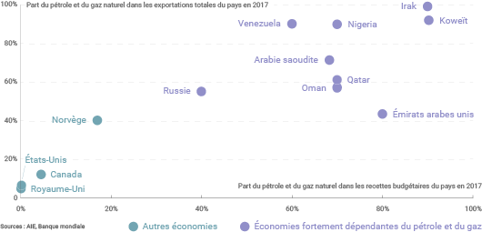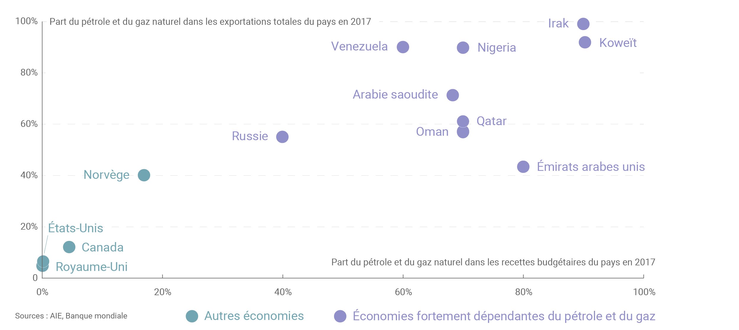 Dans ce rapport en anglais publié le 25 octobre, l’Agence internationale de l’énergie (AIE) décrit la situation économique de six grands exportateurs de pétrole et de gaz naturel fortement dépendants de ces ressources : l’Arabie saoudite, les Émirats arabes unis, l’Irak, le Nigéria, la Russie et le Venezuela. Elle rappelle les faiblesses associées à une trop grande dépendance et envisage l’évolution possible de ces économies à travers différents scénarios.