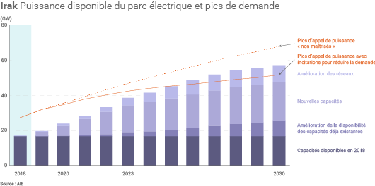 Outre les investissements dans les réseaux de transport et de distribution d’électricité et la modernisation des installations de production, l’AIE appelle également à appliquer une tarification progressive de l’électricité, afin que cette dernière soit « plus abordable pour les ménages à faible revenu » tout en incitant à réduire la demande. Selon l'Agence, l'approvisionnement électrique de l'Irak constitue in fine un indicateur « pour mesurer les progrès » du pays en matière d'énergie.