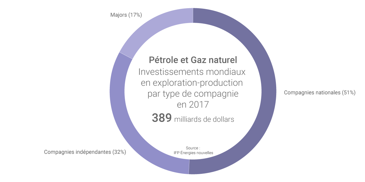 En 2017, les investissements en E&P des compagnies pétrolières nationales ont augmenté de 2% et compté pour plus de la moitié des investissements mondiaux. (©Connaissance des Énergies, d’après IFP Énergies nouvelles)