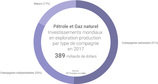 En 2017, les investissements en E&P des compagnies pétrolières nationales ont augmenté de 2% et compté pour plus de la moitié des investissements mondiaux. (©Connaissance des Énergies, d’après IFP Énergies nouvelles)