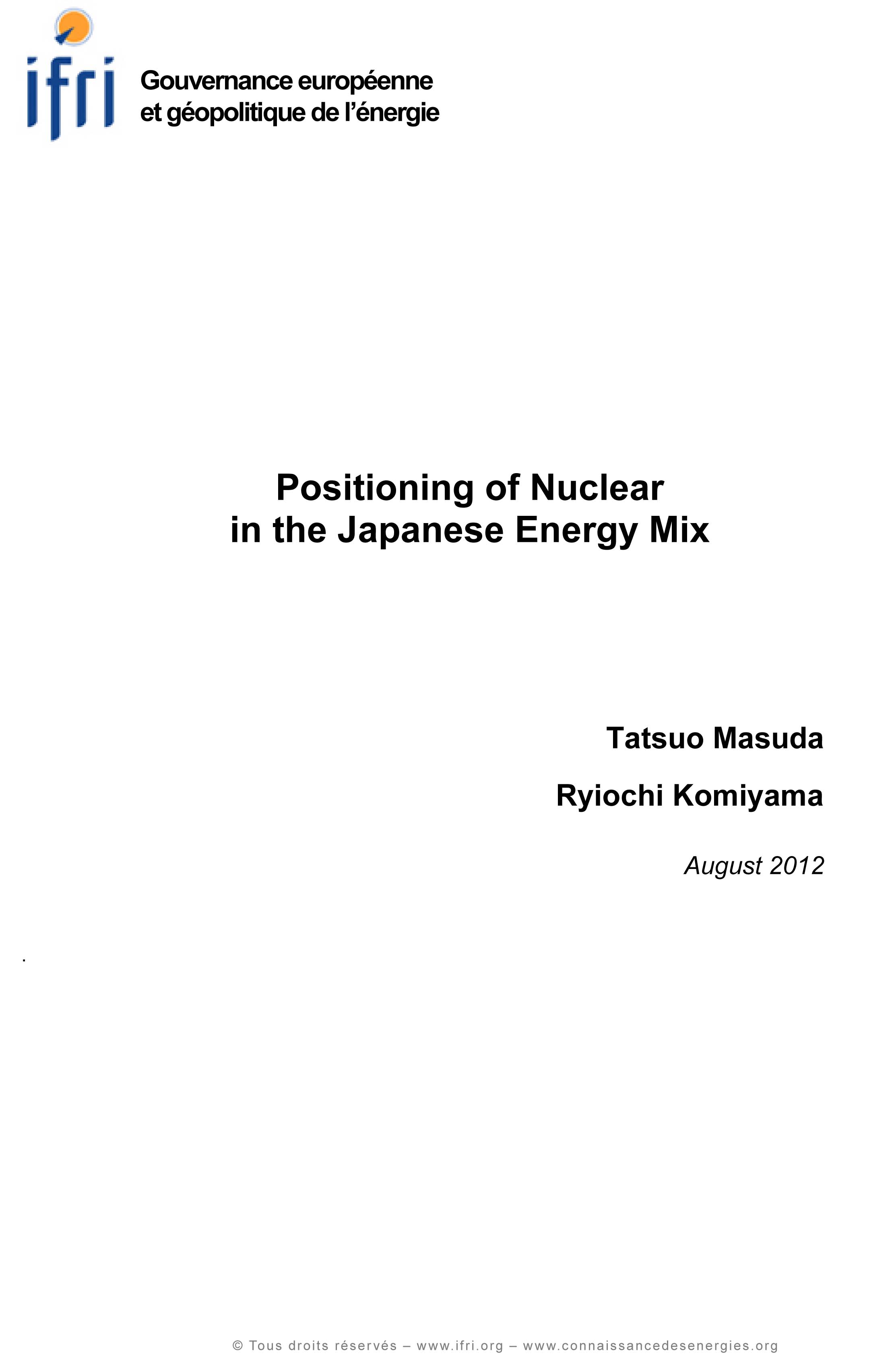 Selon les professeurs Tatsuo Masuda et Ryiochi Komiyama, cette perspective historique est un facteur d’explication, parmi d’autres, de l’accident de Fukushima survenu en mars 2011. Dans l’étude « Positioning of Nuclear in the Japonese Energy Mix » publiée par l’Ifri, ils retracent également l’évolution technologique de l’énergie nucléaire au Japon, ainsi qu’aux États-Unis et en France.
