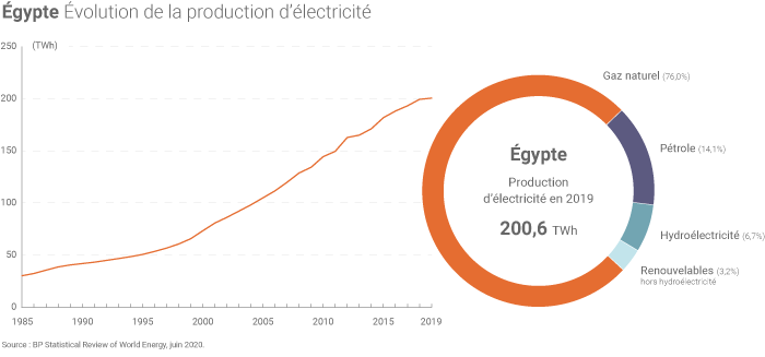 Plus de 90% de la production d’électricité en Égypte est encore carbonée à l'heure actuelle et ce secteur compte pour « environ 30% des émissions de gaz à effet de serre du pays » selon la BAD. L'Égypte dispose d’un accès quasi universel à l’électricité (99% de la population) et la consommation électrique nationale est en forte hausse (+ 5% par an en moyenne), en raison de « la croissance démographique et économique, l’urbanisation et l’utilisation peu rationnelle de l’électricité due au subventionnement élevé des tarifs aux consommateurs ».