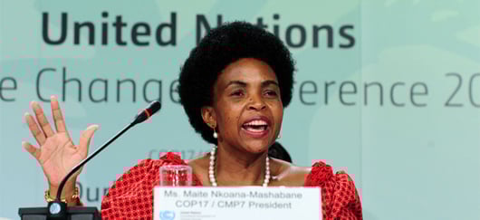 La ministre sud-africaine des Affaires étrangères et présidente de "COP 17", a reconnu avant l'adoption de l'accord que celui-ci n'était "pas parfait". (©Unati Ngamntwini)