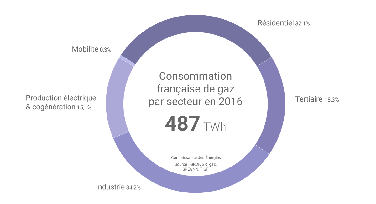 En 2016, près de 15,1% de la consommation française de gaz a été utilisée pour produire de l'électricité. (©Connaissance des Énergies)