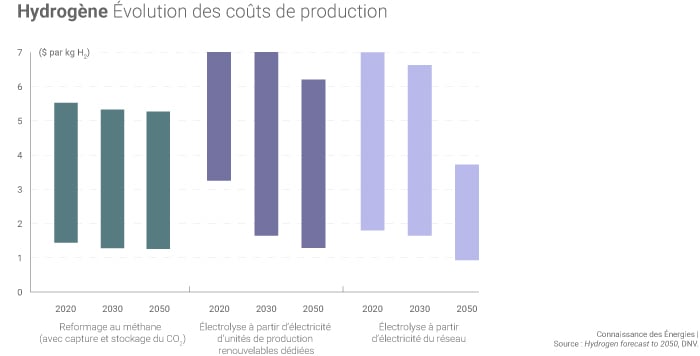 Évolution des coûts de production de l'hydrogène selon les prévisions de DNV