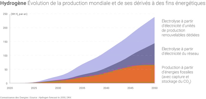 Évolution de la production mondiale d'hydrogène selon les prévisions de DNV