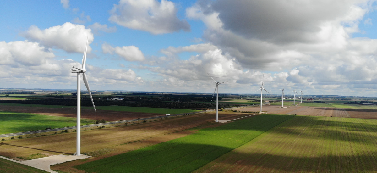 Mis en service dans les Hauts-de-France en mars 2025, le parc éolien de Moulin Blanc permettrait d'éviter 3 239 tonnes d'émissions de CO2 par an, « soit l’équivalent de 1 709 allers-retours en avion entre Paris et New York » selon son exploitant Boralex. (©Boralex)