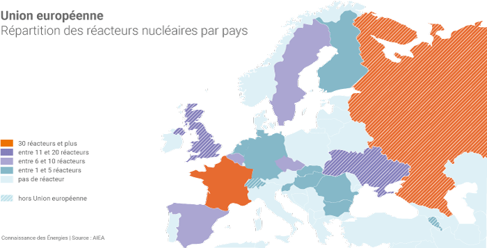 Répartition des réacteurs nucléaires par pays dans l'Union européenne. (©Connaissance des Énergies)