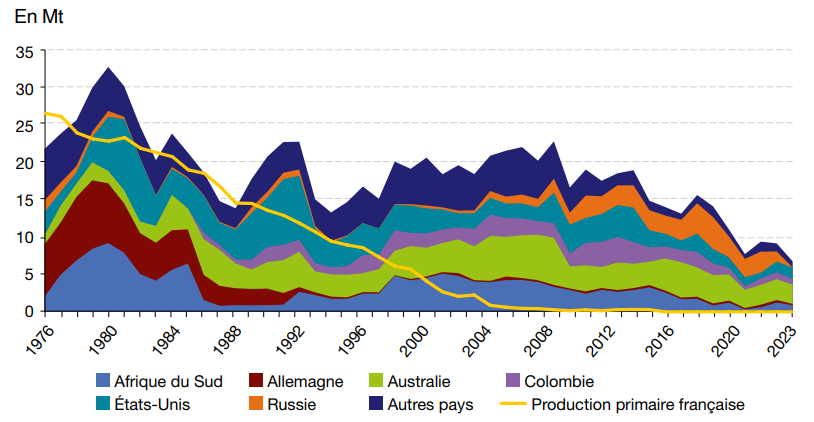 - l'Australie (2,6 Mt de charbon en 2023, 38% des importations françaises) ;