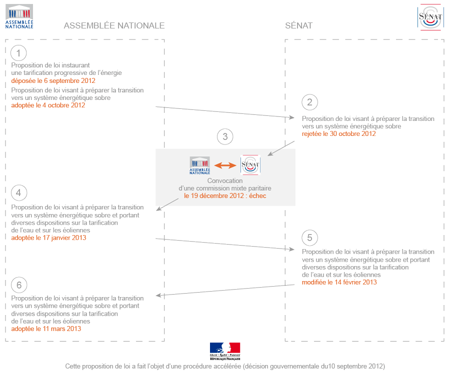 La proposition de loi visant à réduire la consommation d’énergie par le biais d’incitations tarifaires avait suscité de nombreux débats à l’Assemblée nationale et au Sénat. Les débats auront d'ailleurs permis de rappeler aux observateurs toutes les étapes possibles de l’élaboration d’une loi et le principe de la « navette parlementaire » (les deux assemblées doivent voter à la majorité le texte dans les mêmes termes afin que celui-ci soit adopté).
