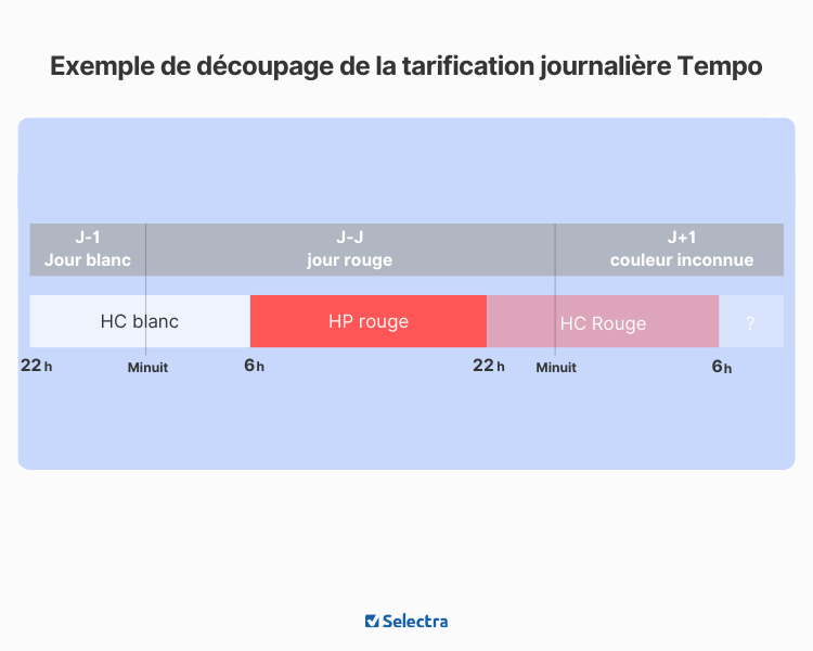 Une journée « de type Tempo » s'étend de 6h à 6h. Elle se décompose plus précisément en 2 parties sur 2 jours : l'une comptant 16 heures pleines (HP) de 6h à 22h et l'autre comptant 8 heures creuses (HC) de 22h à 6h.