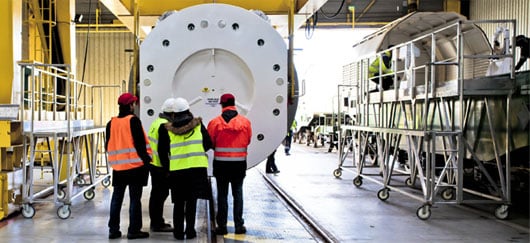 Le champ d'action de l'ASN et de l'IRSN s'étendait à toutes les activités pouvant exposer des personnes à des rayonnements ionisants. Ici, l'inspection d'un convoi de déchets radioactifs. (©ASN/P. Beuf)