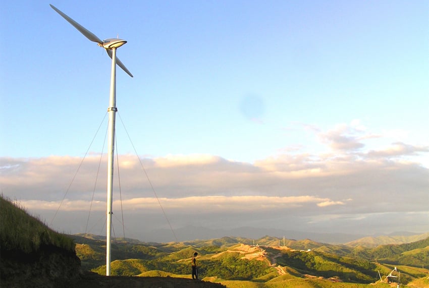 Éolienne bipale du fabricant Vergnet aux Fidji (©Vergnet)
