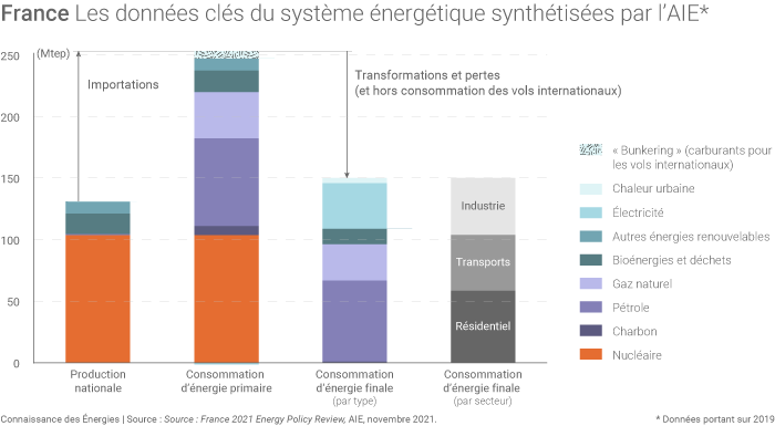 La France a en outre adopté une programmation pluriannuelle de l’énergie (PPE) et une stratégie nationale bas carbone (SNBC) visant à préciser sa stratégie énergie-climat en en renforçant les ambitions au fil du temps. C’est l’efficacité énergétique qui constitue en particulier « le pilier central » de la SNBC, rappelle l’AIE : la France ambitionne de diviser par deux sa consommation d’énergie finale d’ici à 2050, par rapport au niveau de 2012.
